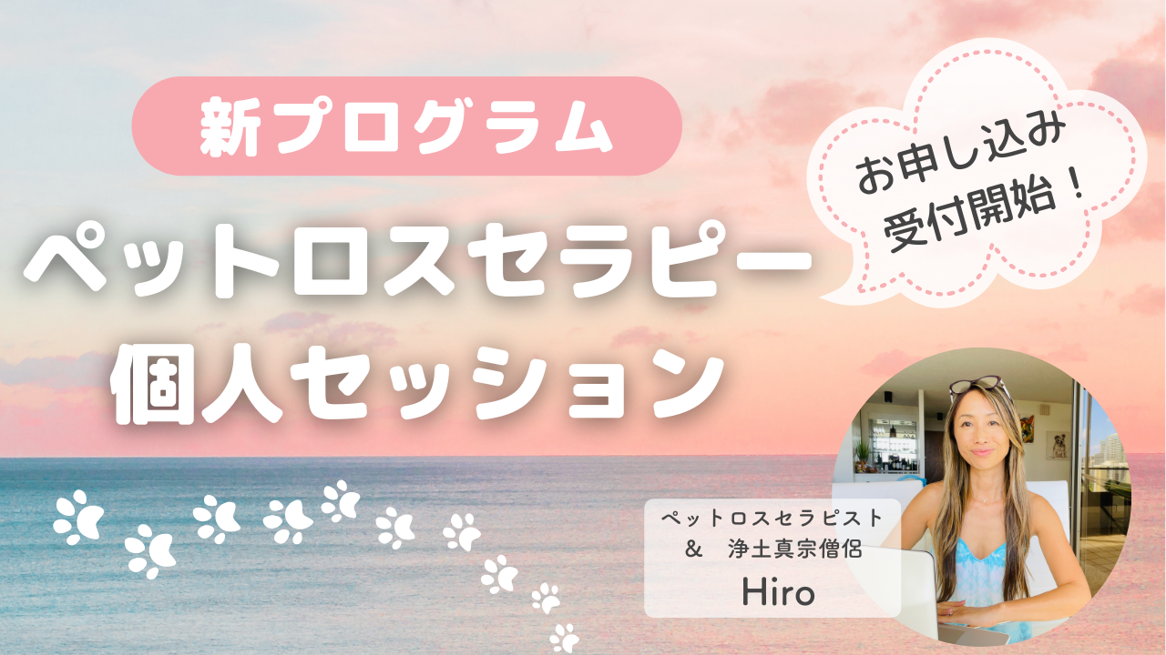 浄土真宗僧侶の資格をお持ちで、ご自身も8年間のペットロスに苦しんだ経験のあるペットセラピストHiloさんによる1対1のペットロスセラピーです。