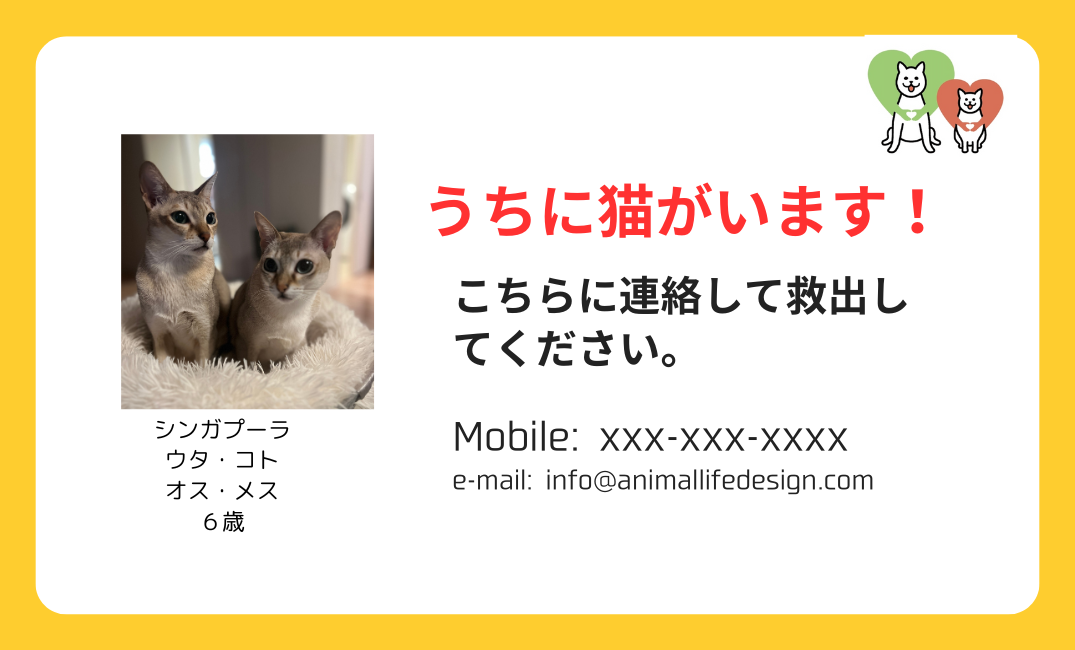 という内容とペットの写真を記載した携帯用カードを発行いたします。